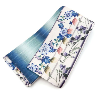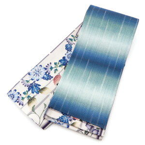 帯 小袋帯 正絹 半幅帯 日本製 リバーシブル 着物 浴衣 グラデーション 半巾帯 帯 半幅帯 文様 花柄 菊 白 ホワイト 紫 青 ブルー 水色 エメラルド ミント レトロ 大正浪漫 モダン 和柄