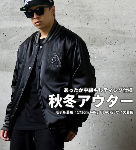 スタジャン メンズ 無地 スタジアムジャンパー 秋 冬 大きいサイズ ジャケット 中綿 キルティング サテン 光沢 b系 ストリート ファッション おうちコーデ