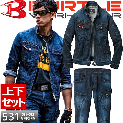 【即日発送】バートル 作業着 デニム 上下セット 作業服 ジャンパー カーゴパンツ【秋冬】531&532 BURTLE 長袖ジャケット ブルゾン ズボン 作業着 531シリーズ